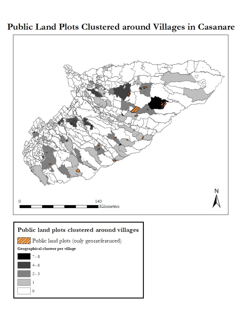 In Casanare, public land allocation is clustered in 41 out of 307 villages (13,35%), suggesting that this mechanism may have triggered a land concentration effect.